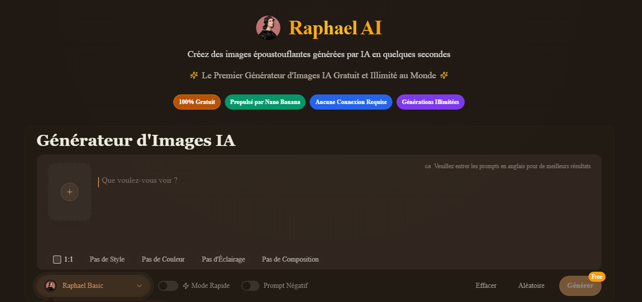 Dans cet article, nous explorons les solutions les plus pratiques qui permettent de créer des images IA professionnelles sans inscription et sans paiement, avec un focus particulier sur Raphael.app, l'une des meilleures options disponibles actuellement.